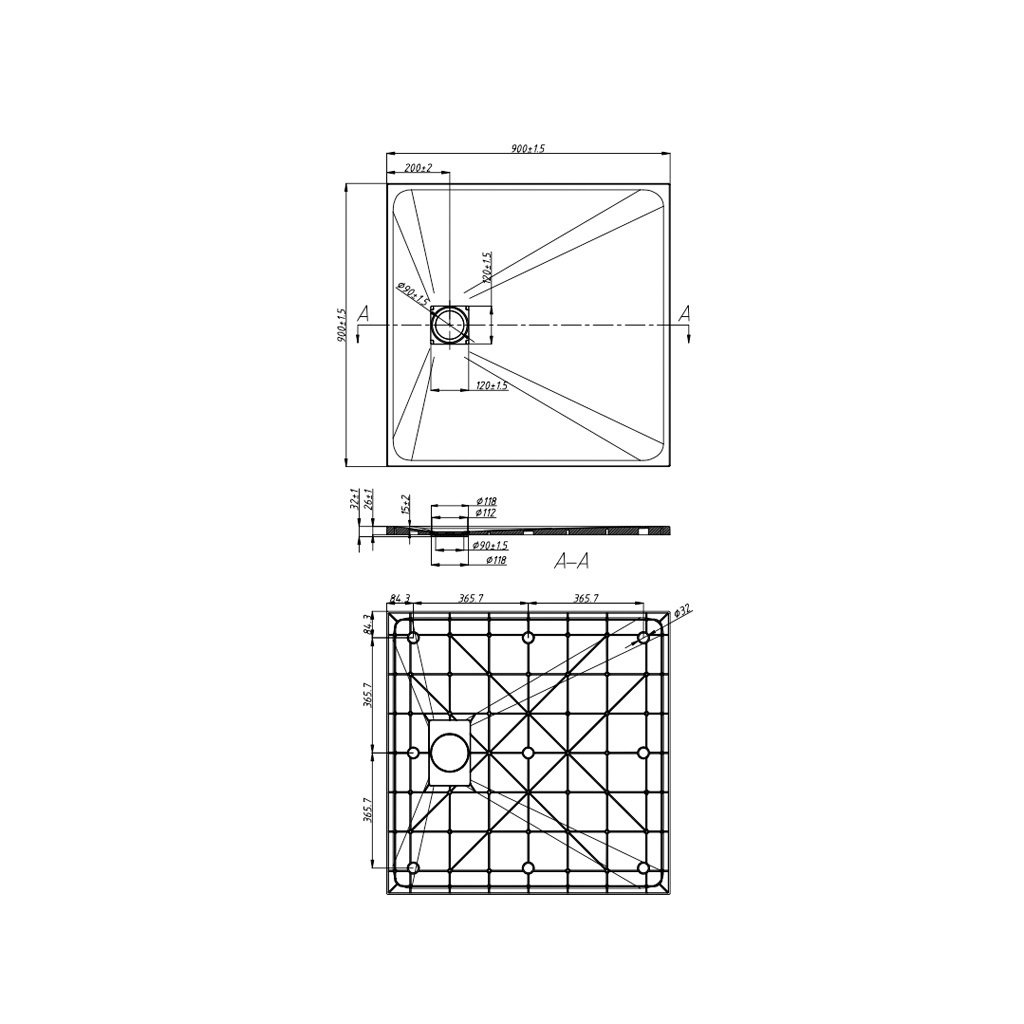 Rozměry: 900x900x26 mm
