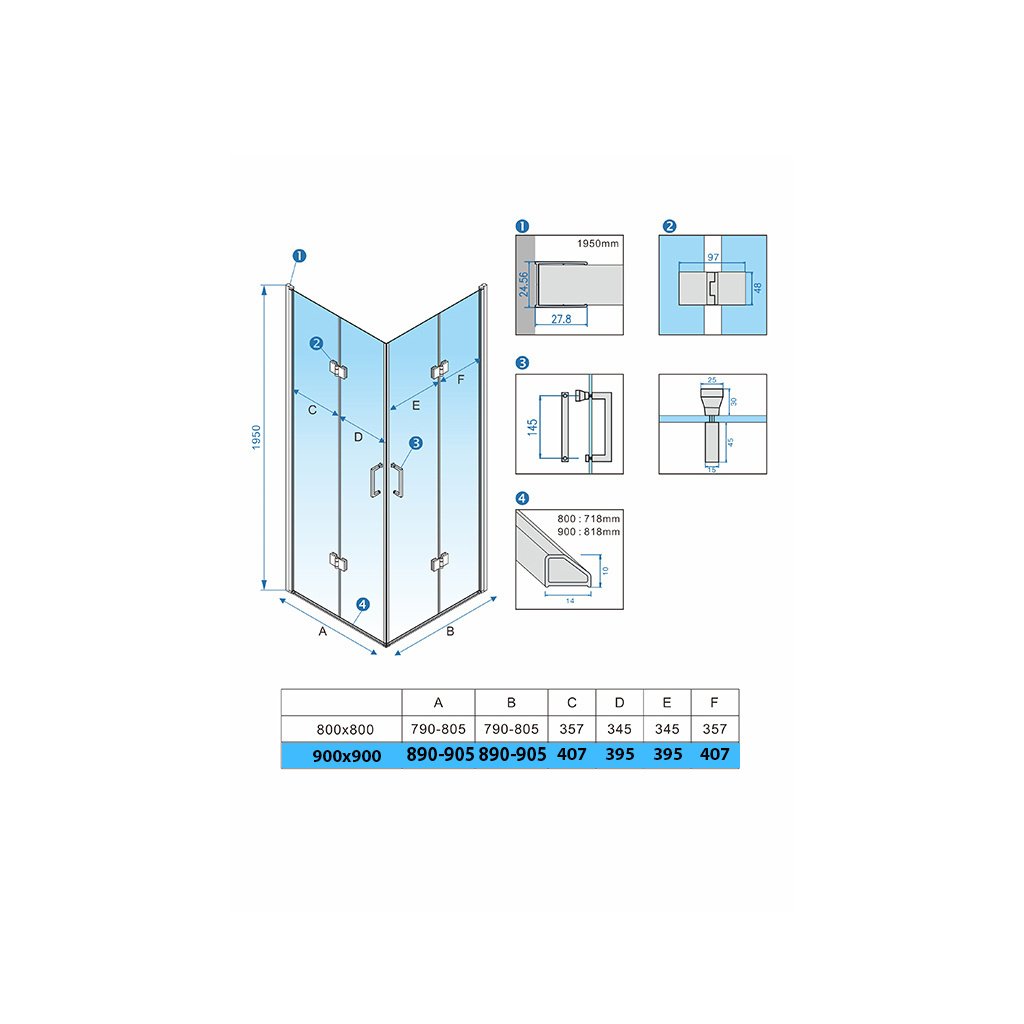 - Rozměry sprchového koutu: