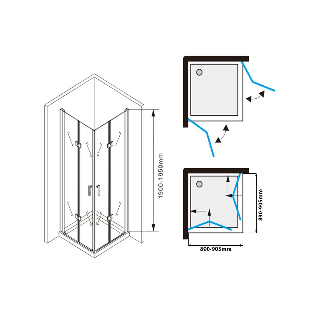 Čtvercový sprchový kout HYD-SK08C 90x90 chrom/transparent + vanička HYD-SSV-SXL02B černá + sifon je vyroben z odolných a kvalitních komponentů splňují požadavky i těch nejnáročnějších zákazníků.