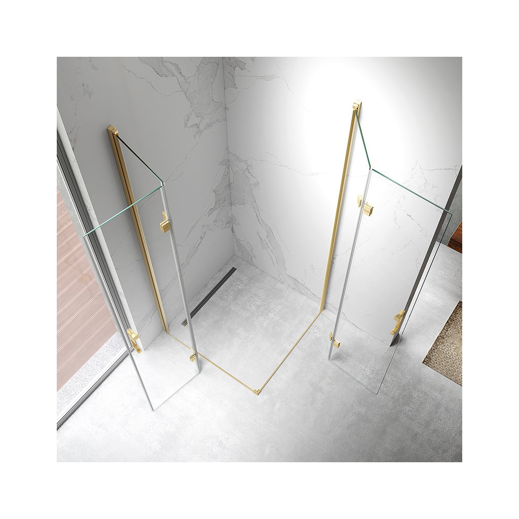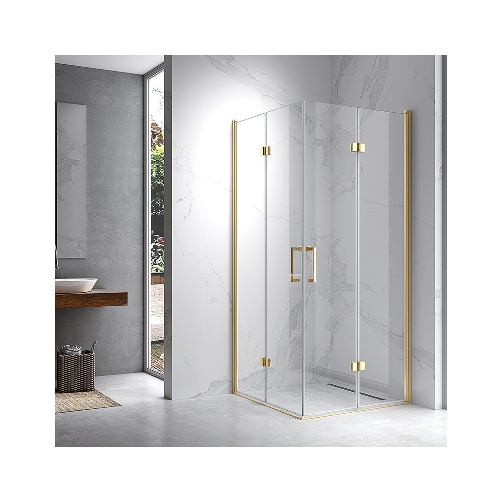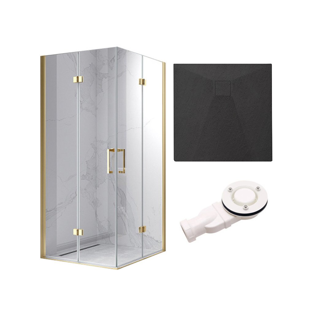 Čtvercový sprchový kout HYD-SK08C 90x90 zlatý/transparent + vanička HYD-SSV-RIKO černá + sifon je vyroben z odolných a kvalitních komponentů splňují požadavky i těch nejnáročnějších zákazníků.Sprchové dveře a sprchové kouty této série se vyznačují jedinečným stylem a designem, který umožňuje snadno sladit design celé koupelny. Vzhled dobře doplní nejen moderní koupelny, ale i tradiční koupelny ve starších domech.