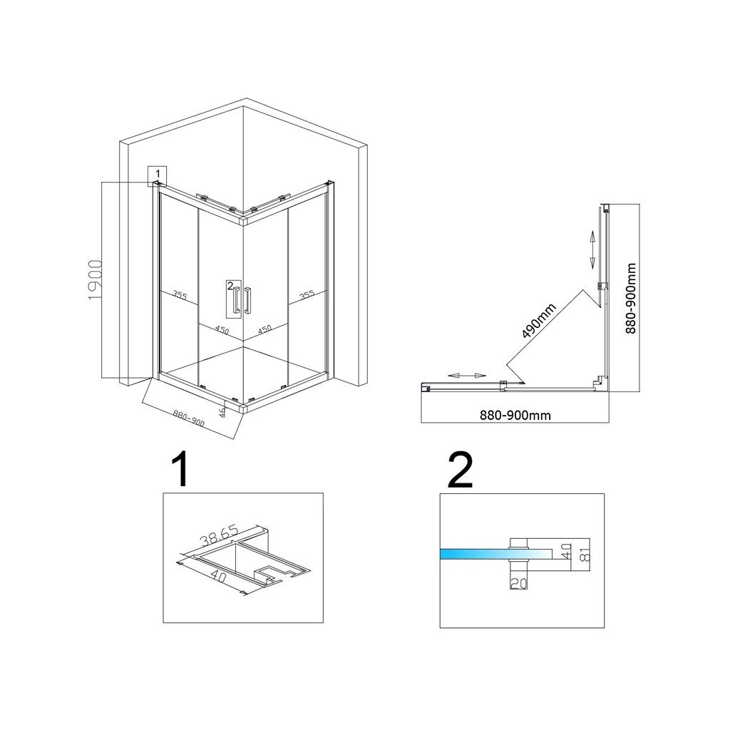 - šířka x délka (mm): 900x900