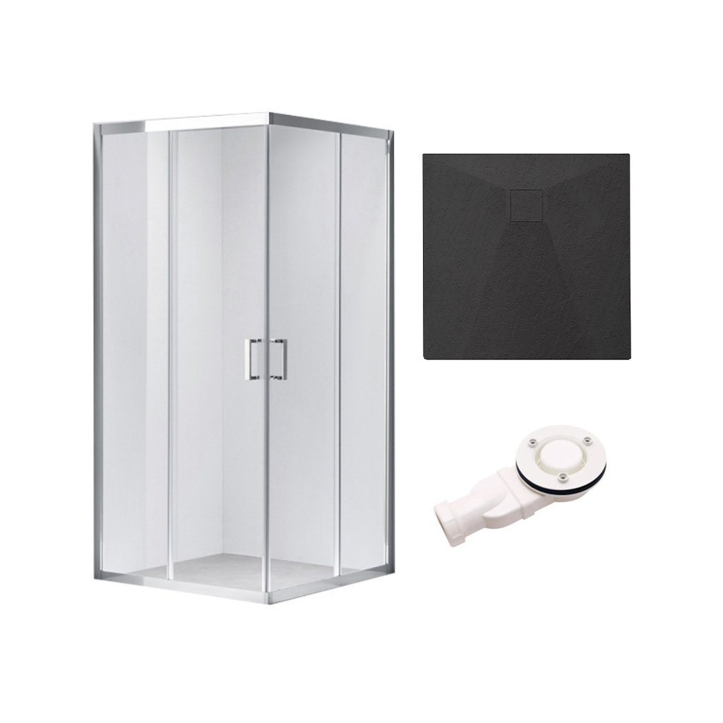 Čtvercový sprchový kout HYD-SK102B 90x90 chrom/transparent + vanička HYD-SSV-RIKO černá
