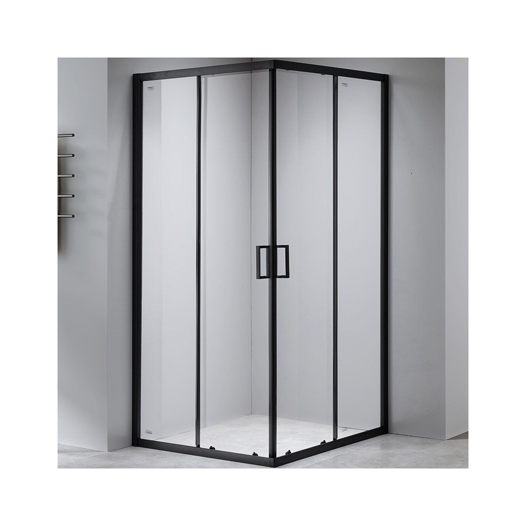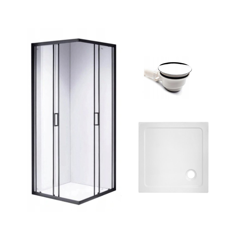 Čtvercový sprchový kout HYD-SK30A 80x80 černá/transparent + vanička HYD-SSV-ST02A bílá