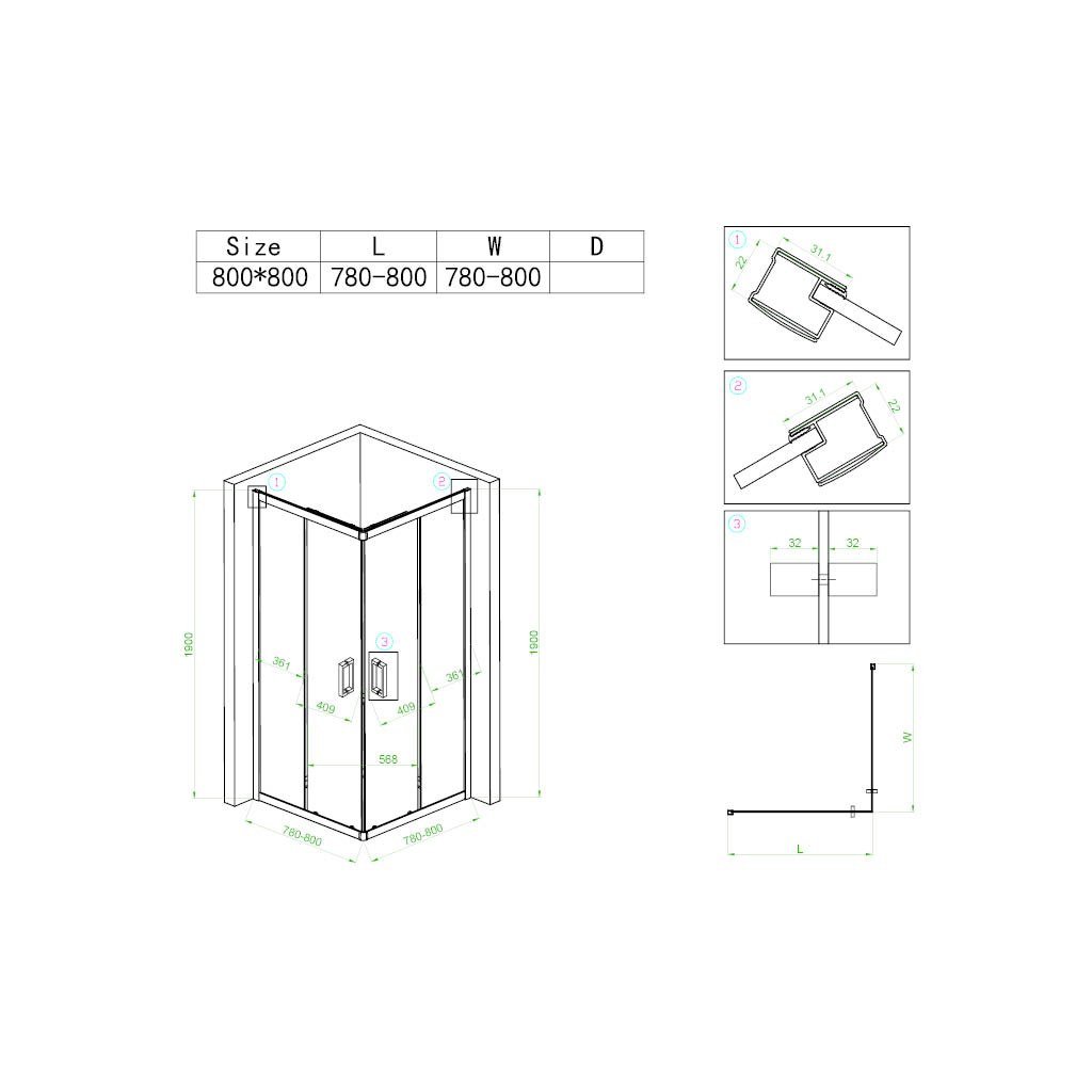 - Rozměry sprchového koutu:
