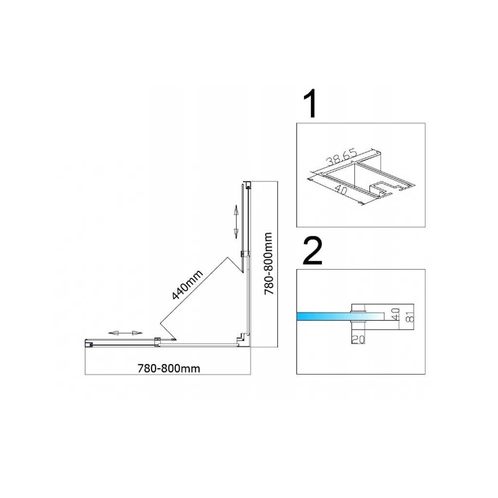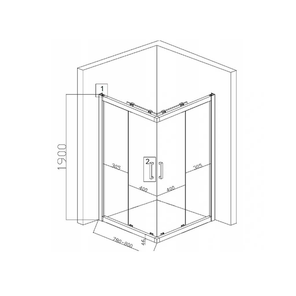 Čtvercový sprchový kout HYD-SK90A 80x80 chrom/transparent - bez vaničky