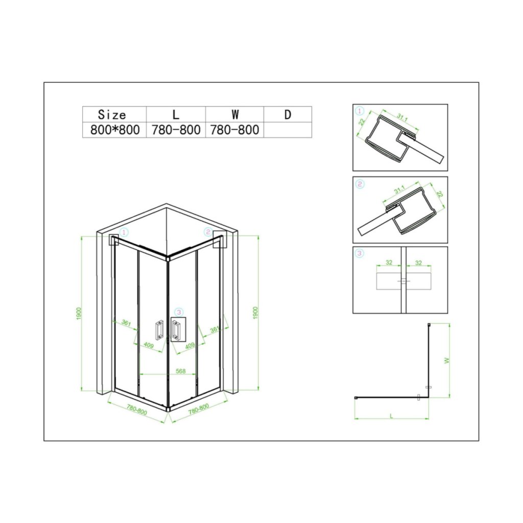 Čtvercový sprchový kout HYD-SK93A 80x80 chrom/transparent - bez vaničky