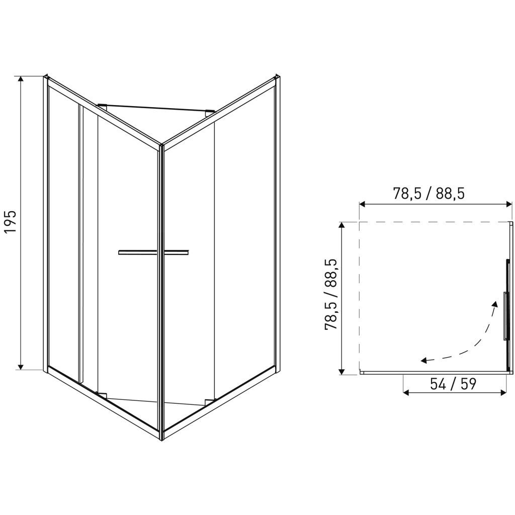 - Rozměry: 78,5 x 78,5 x 195 cm
