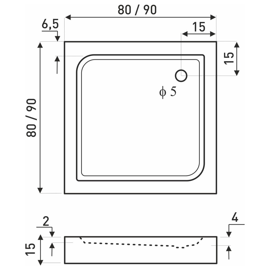 - Rozměry vaničky: 80 x 80 x 15 cm