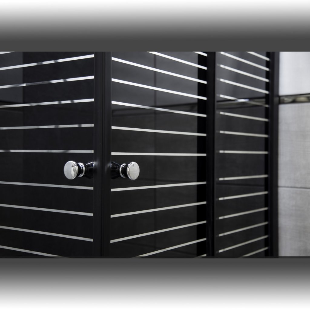- Sklo: transparentní, 5 mm, tvrzené s dekorem (černé pruhy)