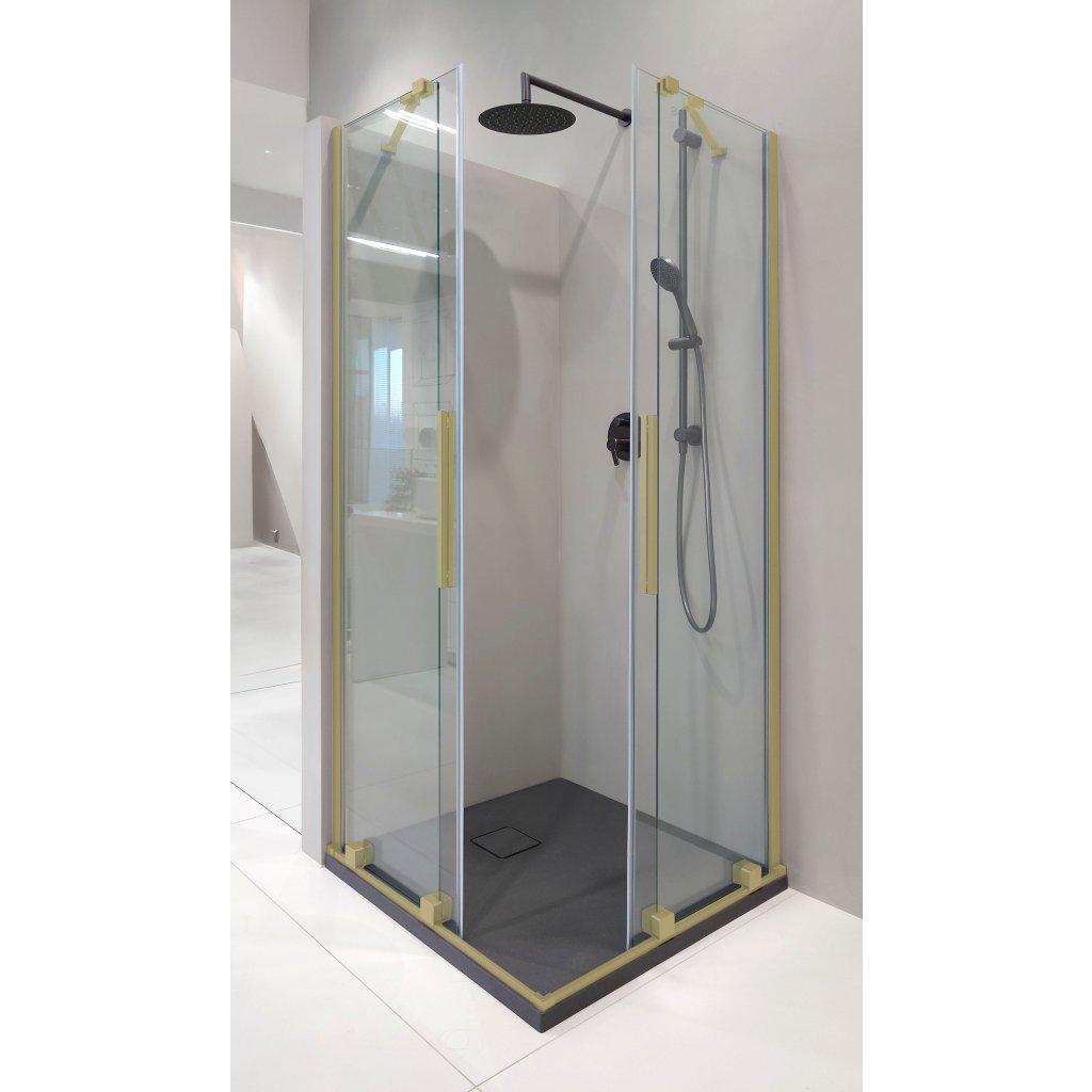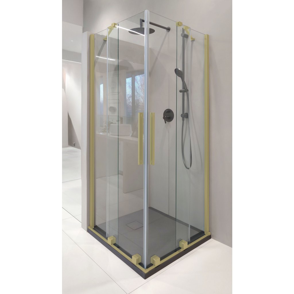 Sprchový kout Prizma je model se dvěma posuvnými dveřmi. Kout Prizma v luxusním broušeném zlatě je návrhem pro ty, kteří chtějí své koupelně dodat exkluzivní charakter. Decentní, broušené zlato dodává eleganci při zachování moderní estetiky. Kompaktní design sprchového koutu dokonale zapadne i do menších koupelen a povrchová úprava Active-Cover usnadňuje údržbu. Možnost instalace bez sprchové vaničky na dlaždice je další výhodou, která zdůrazňuje minimalistický charakter této stylové kabiny.