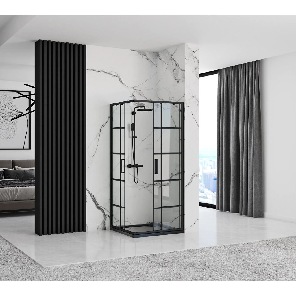 Čtvercový sprchový kout REA CONCEPT 90x90 cm, černý/transparent - bez vaničky