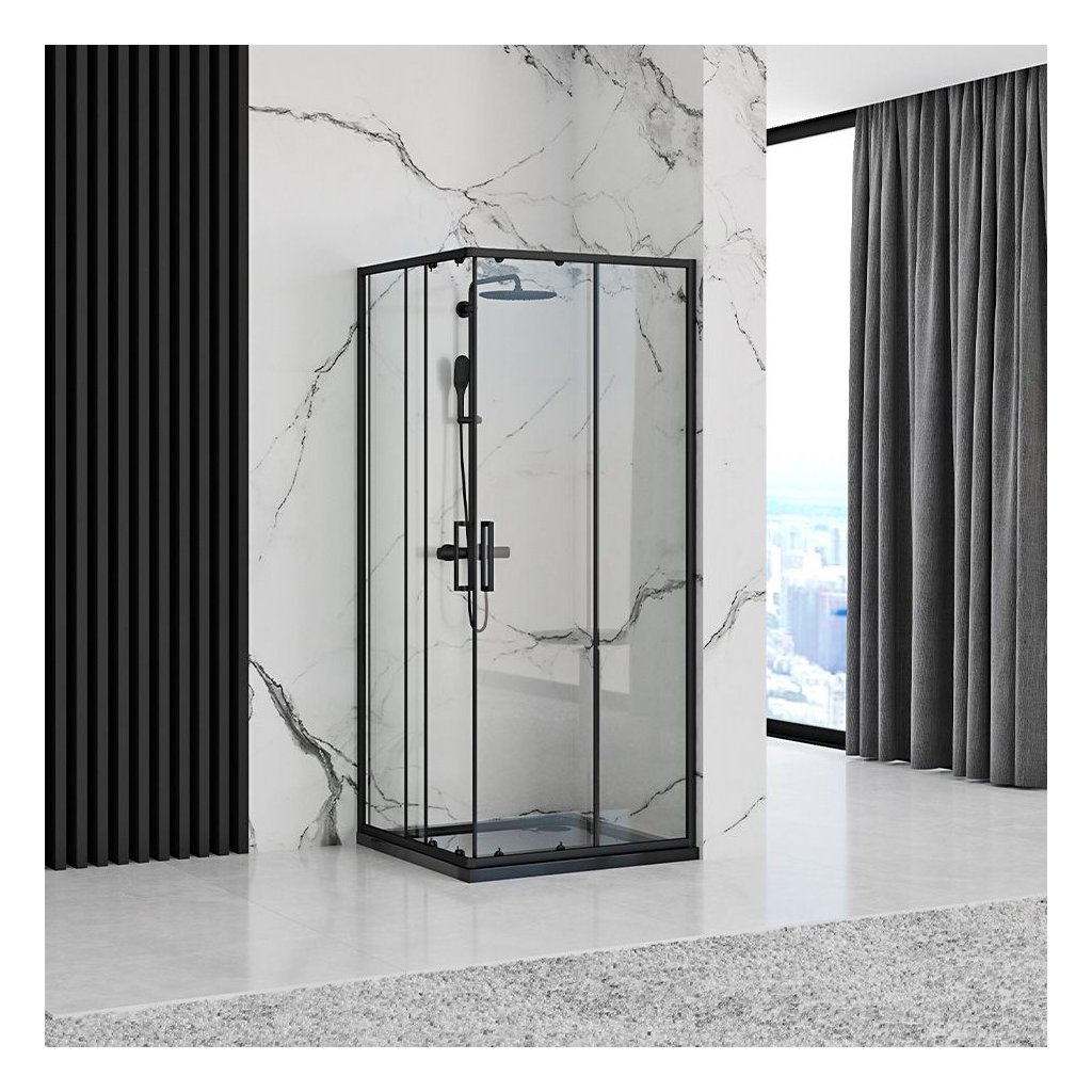 Čtvercový sprchový kout REA PUNTO 80x80 cm, černý/transparent - bez vaničky