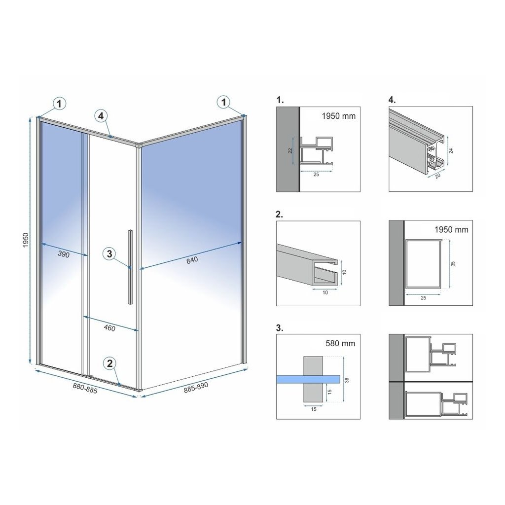 | Instalační rozměry - zástěna (mm): | 885-890 |