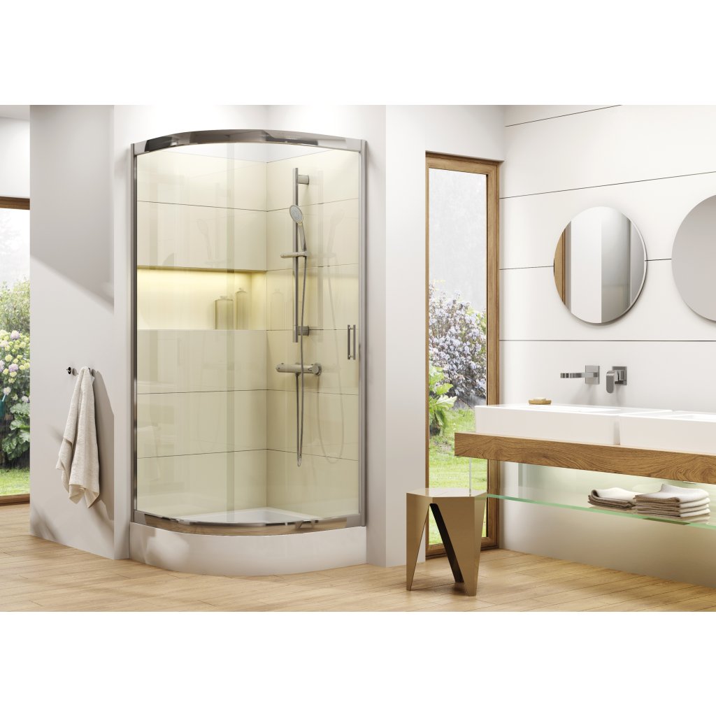 Bílá akrylátová sprchová vanička je vyrobena z nejlepších laboratorně testovaných materiálů. Vyznačuje se vysokou odolností, zachovává si původní barvu a lesk. Výrobek se snadno instaluje. Rovný povrch se také snadno udržuje v čistotě.Nespornou výhodou akrylátové sprchové vaničky je skutečnost, že se rychle zahřívá, což se projevuje v pohodlném používání. Stačí chvilka práce se sprchou a vstoupíte nohama na příjemně teplý povrch. Čtvrtkruhový tvar, který je ideální pro vestavěné nebo větší koupelny.