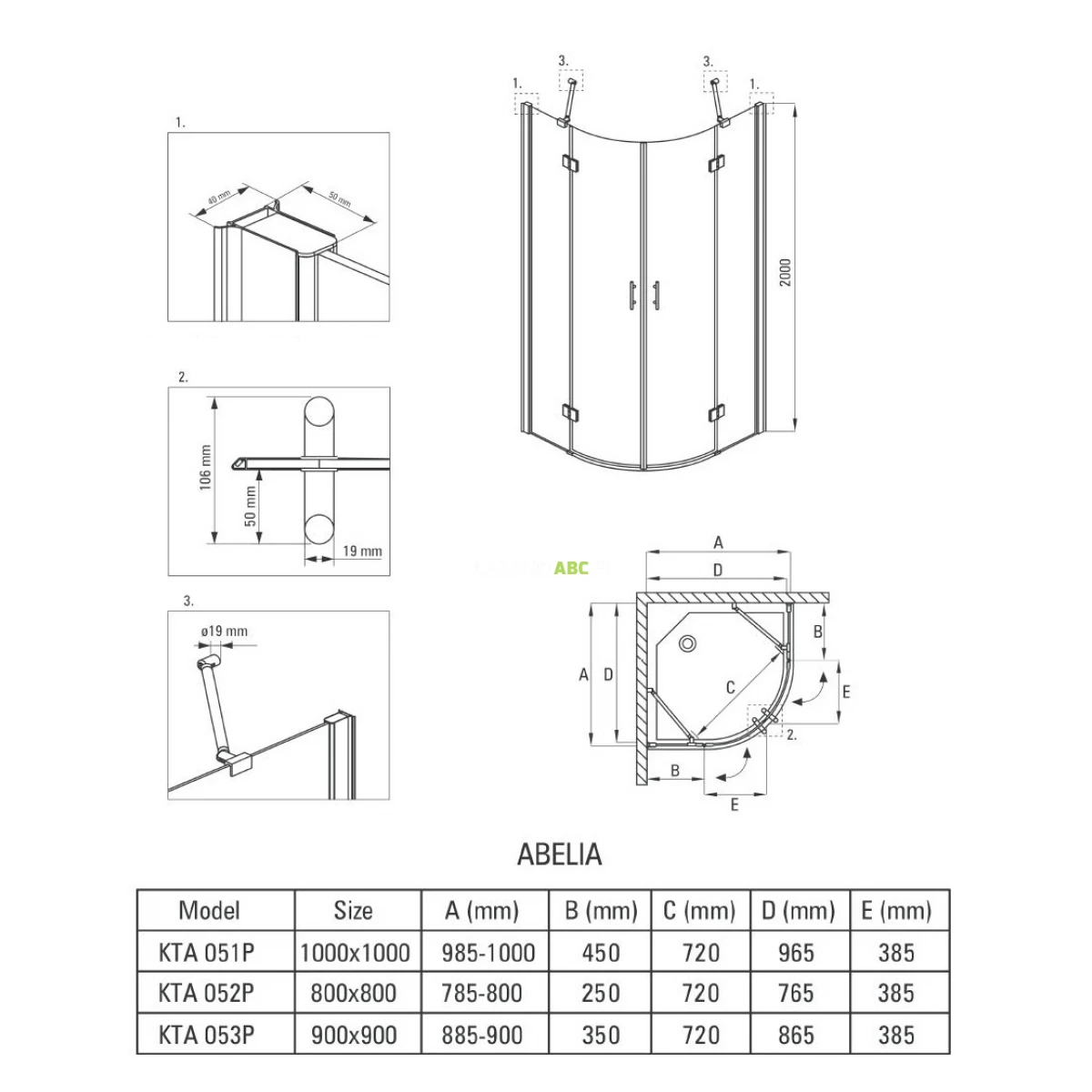 Čtvrtkruhový sprchový kout Abelia 100x100 cm - KTA 051P - bez vaničky