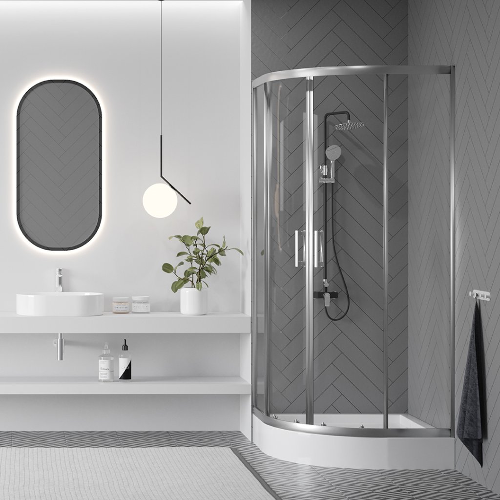 Objevte funkčnost a eleganci ve své koupelně díky modernímu sprchovému koutu Desna ve čtvrtkruhovém provedení s poloměrem oblouku 550 mm. Tento model vyniká svým minimalistickým designem a precizním zpracováním, které z něj činí ideální volbu pro různé styly koupelnových interiérů - od moderních až po klasické.