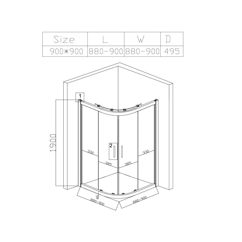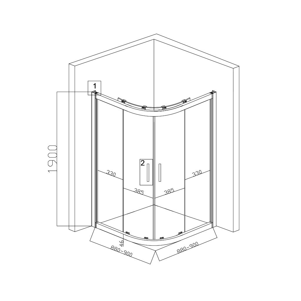 Čtvrtkruhový sprchový kout HYD-RK01B 90x90 černá/transparent - bez vaničky