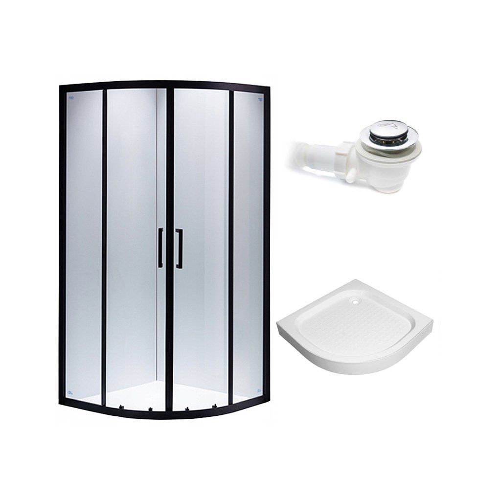 Čtvrtkruhový sprchový kout HYD-RK01A 80x80 cm černá/transparent + vanička HYD-RSV-SXL01A bílá