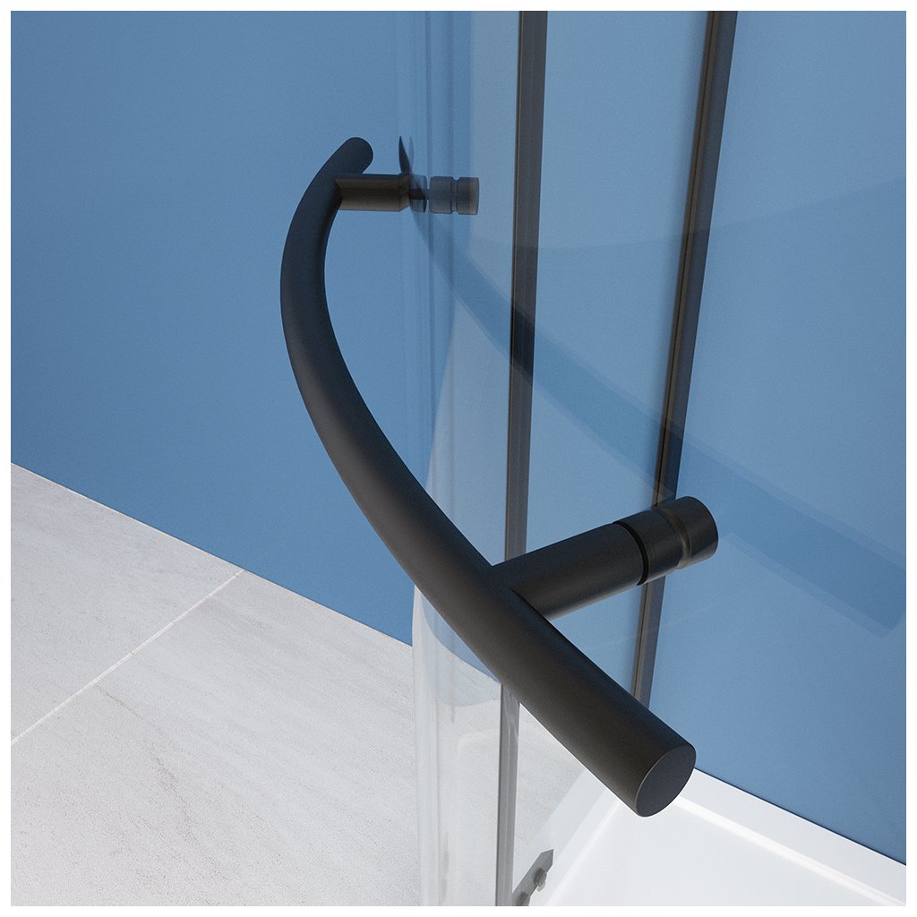 Stabilní nosné hliníkové profily jsou vyráběny v provedení Černý elox. Transparentní výplň skel v kombinaci s černou vytváří moderní vzhled, který bude slušet každé koupelně. Výhodou tohoto sprchového koutu je praktické dlouhé madlo, které můžete použít např. na pověšení ručníku.