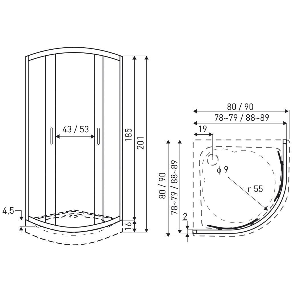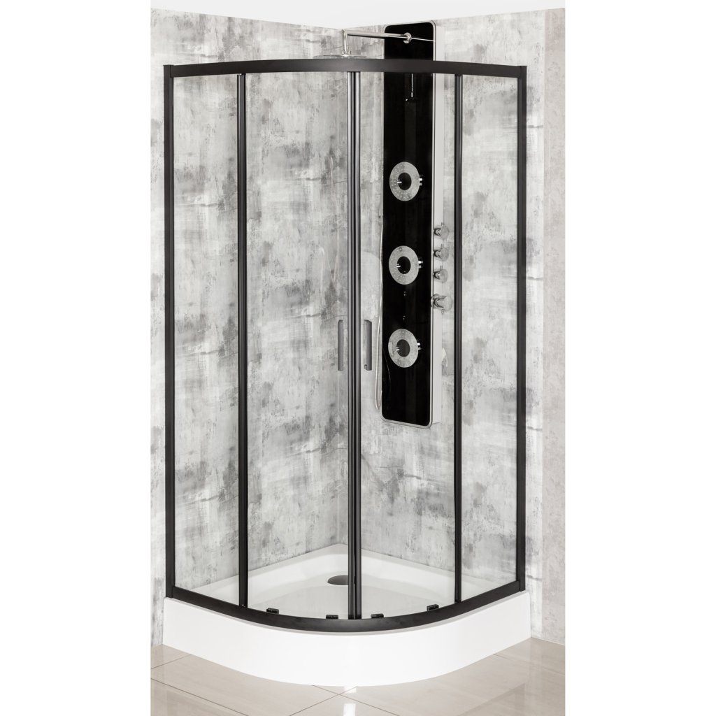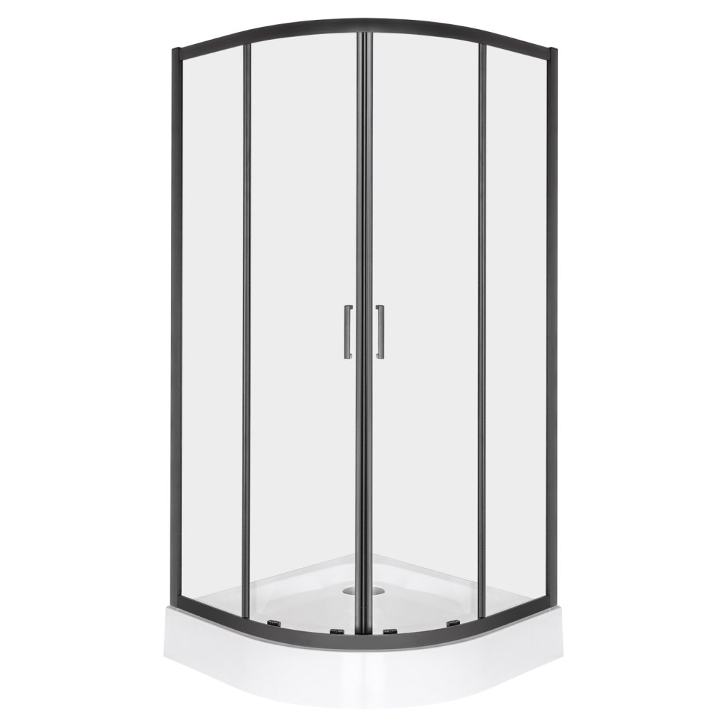 Čtvrtkruhový sprchový kout NV-Aruba BL 80 SV, černý/transparent + vanička bílá