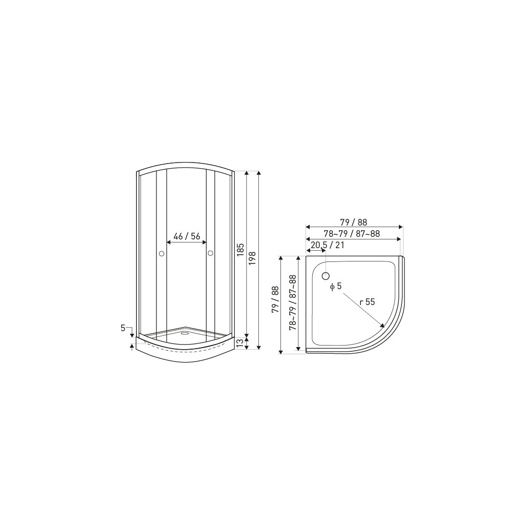- Rozměry vaničky: 79 x 79 x 13 cm