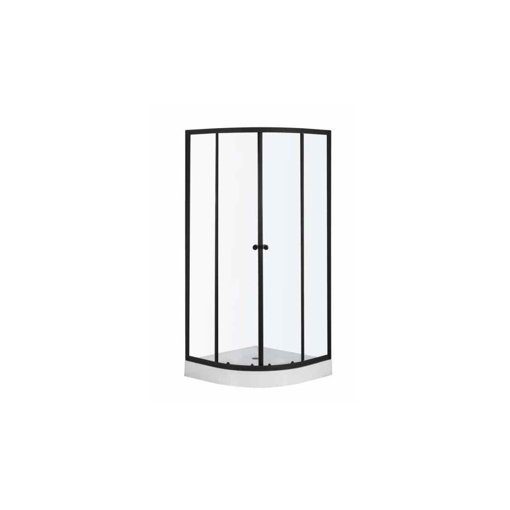 Čtvrtkruhový sprchový kout NV-Leo 90x90 černá/transparent + vanička
