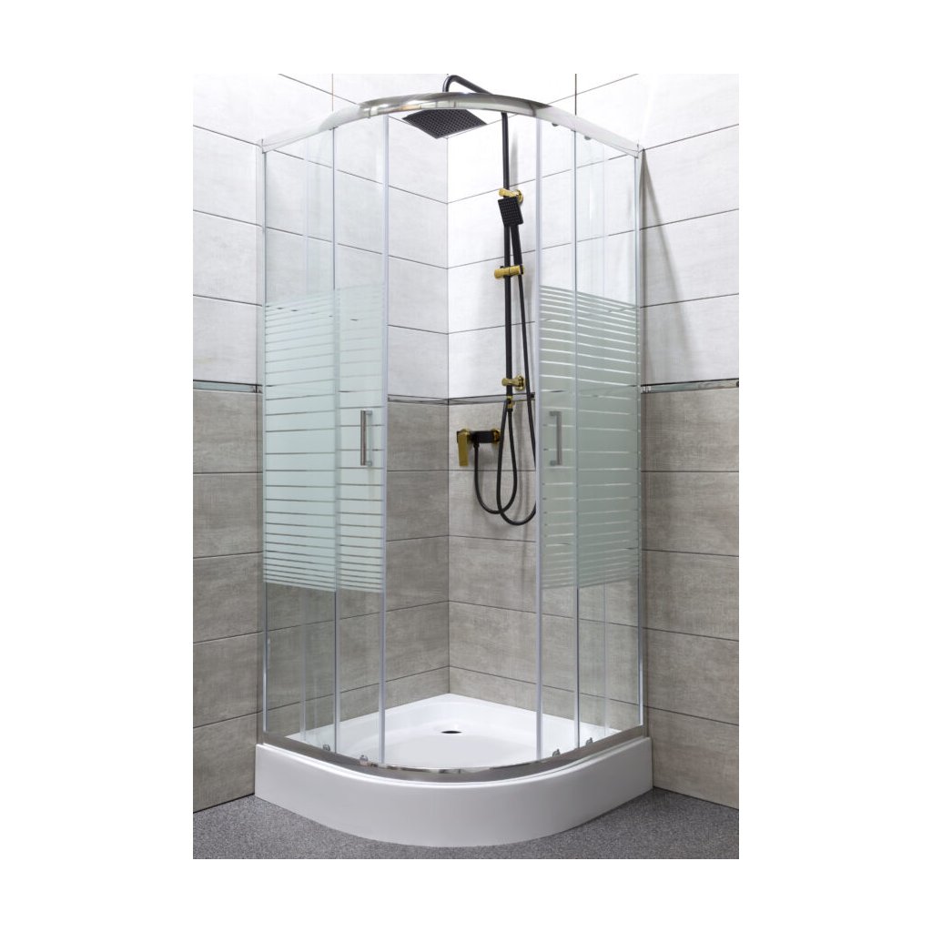 Čtvrtkruhový sprchový kout NV-Madera 80x80 chrom/potisk + vanička