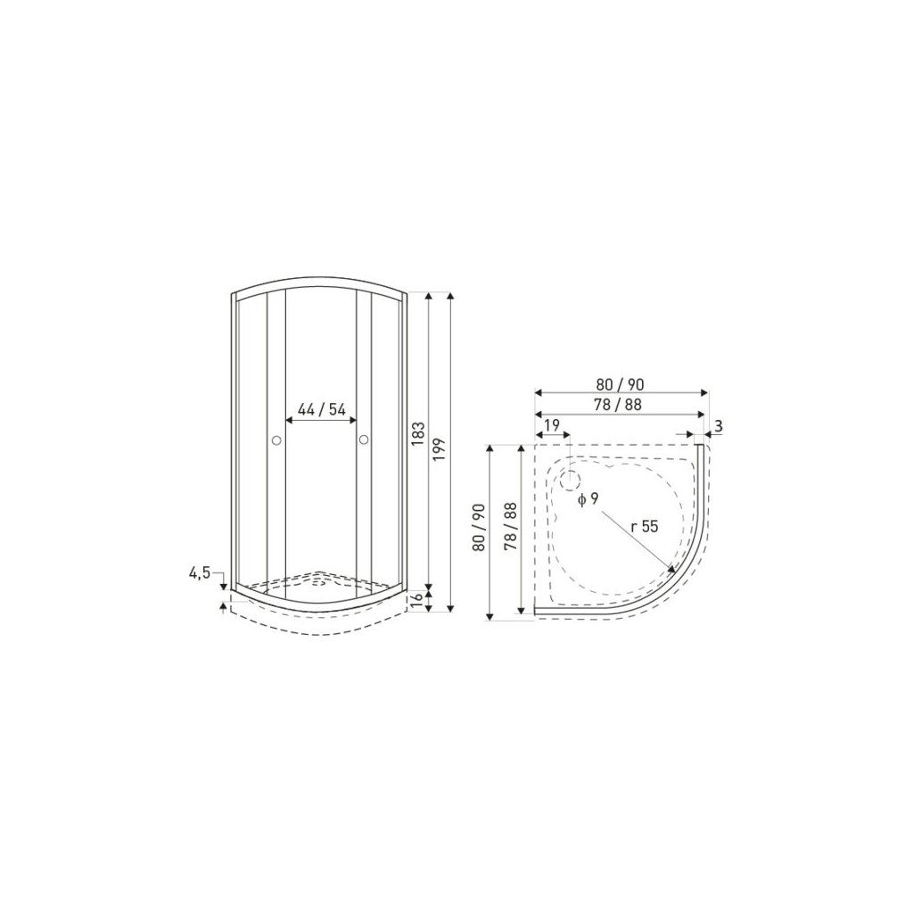 - Rozměry vaničky: 80 x 80 x 16 cm