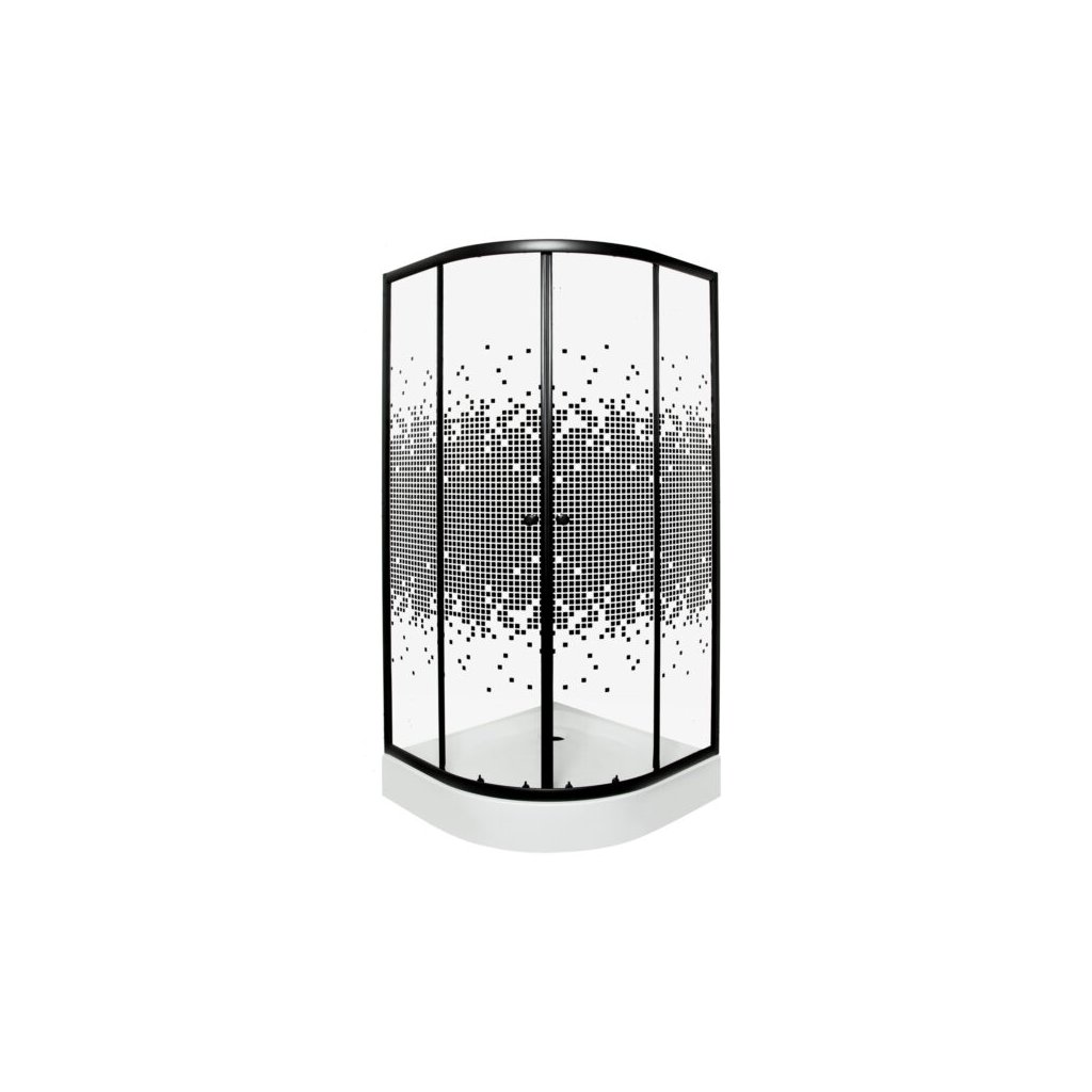 Čtvrtkruhový sprchový kout NV-Pixel 80x80 černá/potisk + vanička