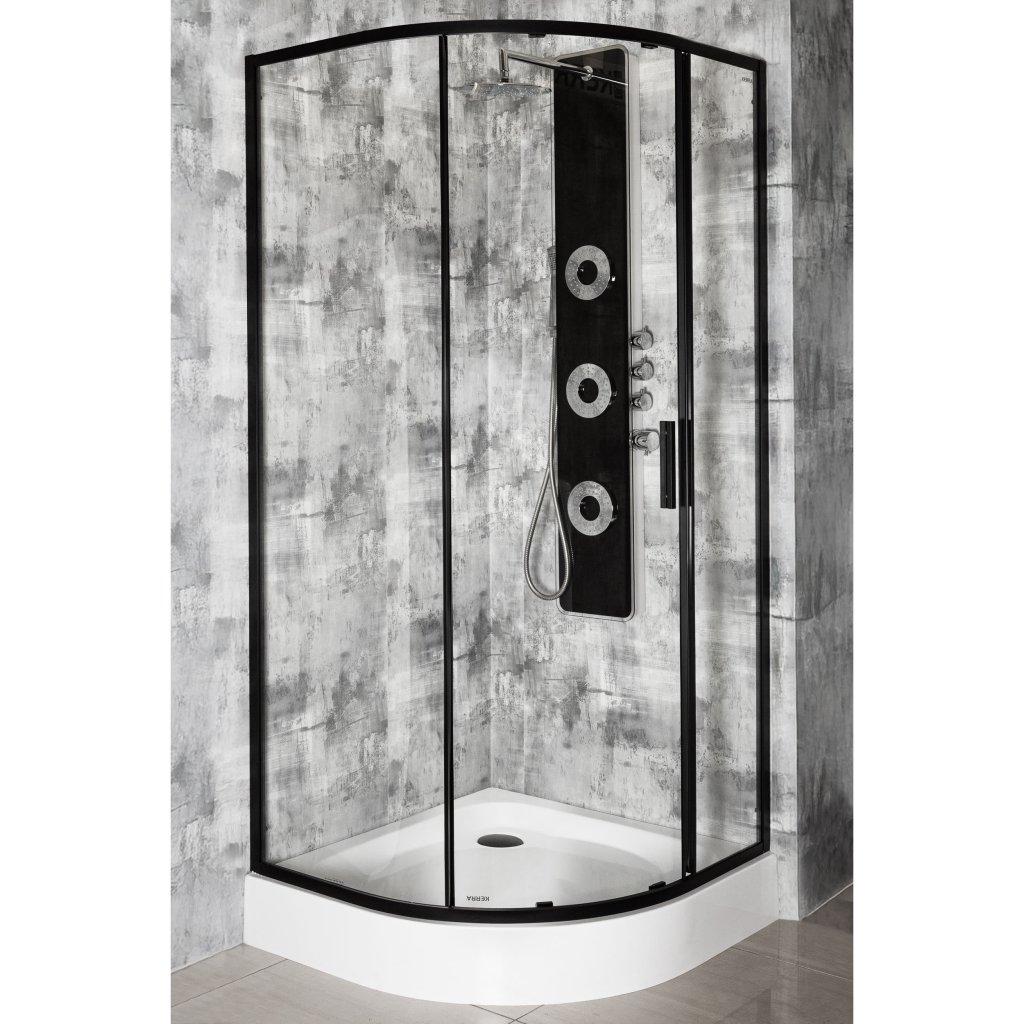 Čtvrtkruhový sprchový kout NV-Solid RPS BL 90, černý/transparent - bez vaničky