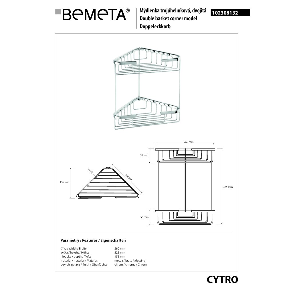 CYTRO: Polička do sprchy dvojitá rohová - 102308132