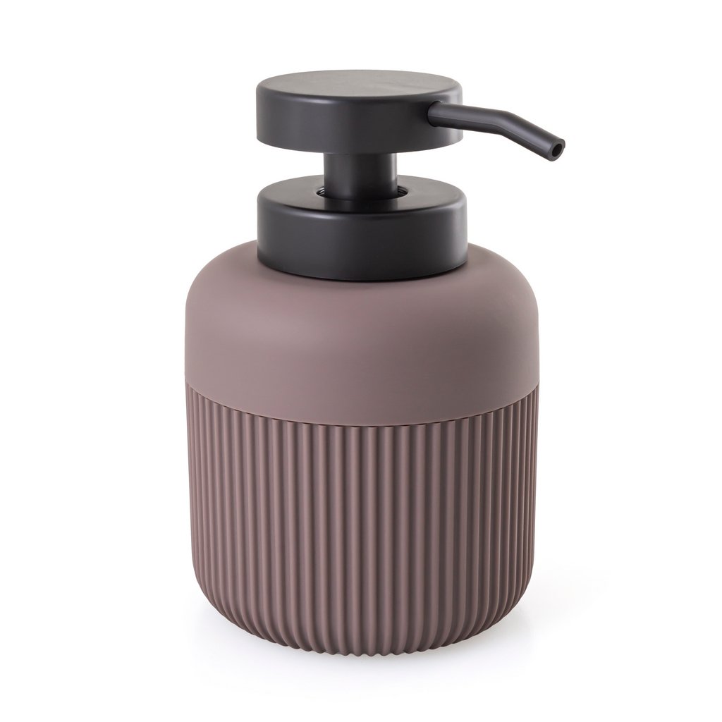 Dávkovač mýdla ze série Loreto v neobvyklé barvě tlumené, švestkově fialové je skutečnou ozdobou koupelny. Jeho velká kapacita 450 ml zajišťuje dlouhodobé používání bez nutnosti častého doplňování mýdlem. Je vyrobena z matného materiálu, který mu dodává elegantní vzhled, a navíc díky dekorativním drážkám působí výjimečně esteticky. Černá široká dávkovací pumpa se perfektně hodí ke švestkově fialové barvě a dodává celku harmonický a velmi moderní vzhled.Doplňkové parametry