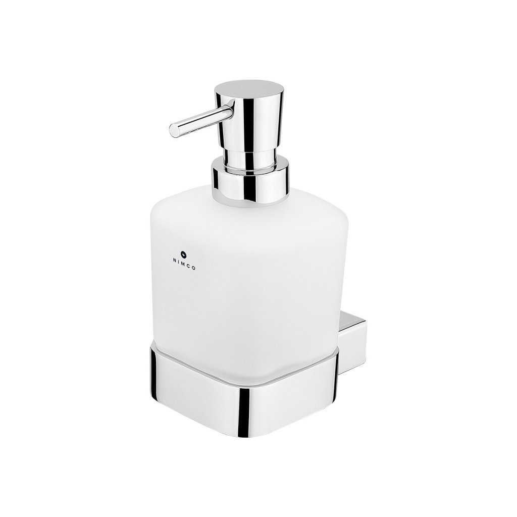 Nástěnný dávkovač tekutého mýdla hranatý, matné sklo a chrom, pumpa mosaz je skvělým doplňkem do koupelny. Nadčasový svět ve vaší koupelně? Toho lze docílit s koupelnovými doplňky KIBO. Tato série nabízí velké množství tvarů, rozměrů, materiálů a barev. Skleněné nádobky oblých i kulatých tvarů jsou toho důkazem. Buďte originální s doplňky KIBO. K čištění povrchu se používá hadřík z mikrovlákna namočený v mýdlové vodě nebo octovém roztoku. Po umytí se vysuší povrch jemným hadříkem. Použití bělících, dezinfekčních, alkalických, silně koncentrovaných čistících prostředků obsahující silná činidla nebo použití tekutých písků by mohlo povrch poškodit!Dávkovač tekutého mýdla, pumpička mosaz bude koupelně slušet mnohem více, pokud zvolíte i další doplňky série Kibo z nabídky koupelnových a WC doplňků NIMCO.