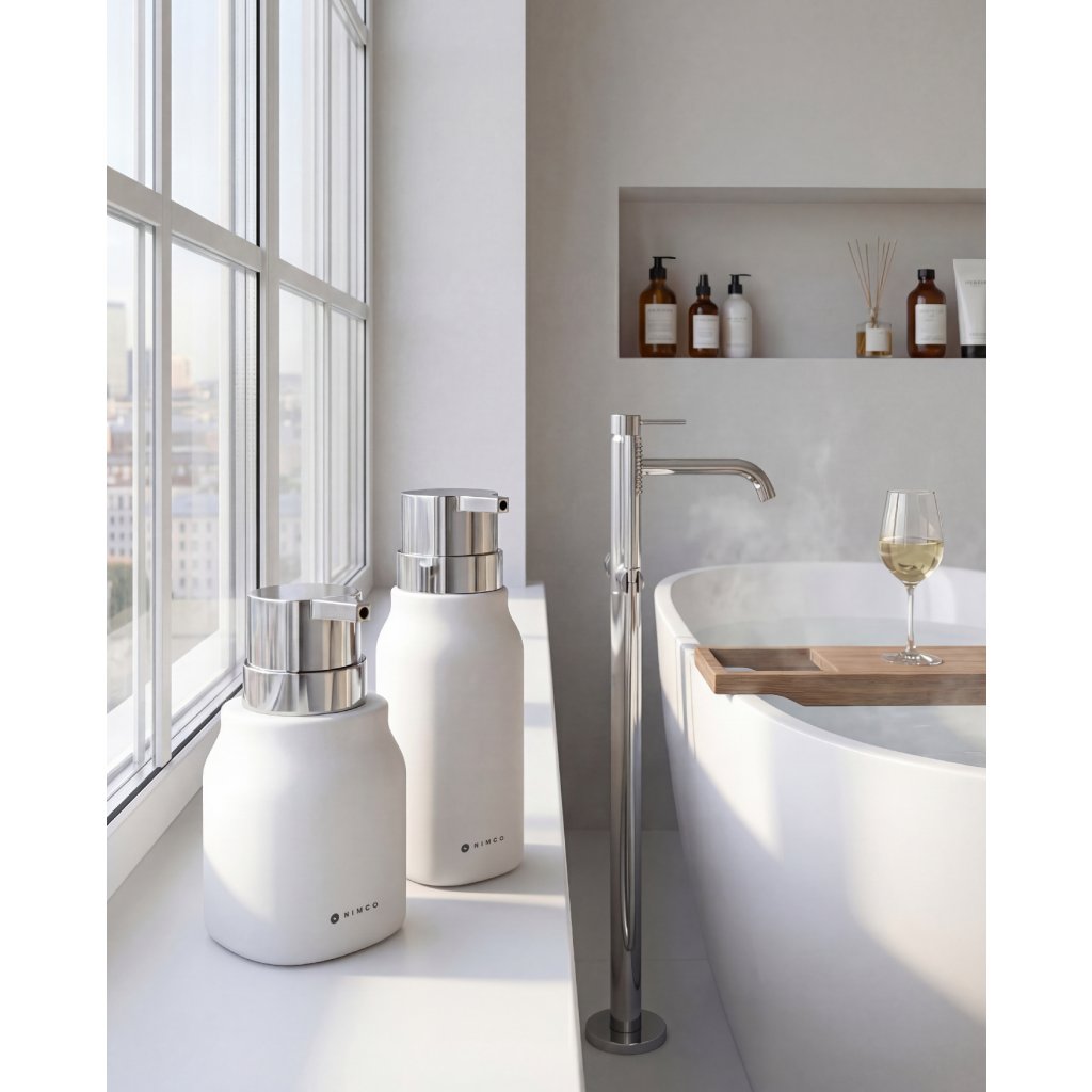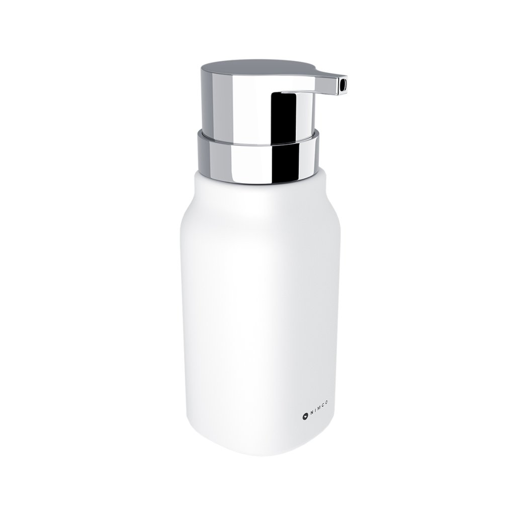 Keramický dávkovač na tekuté mýdlo k postavení na umyvadlo. Matný povrch keramické nádobky Soft-touch je hebký a příjemný na dotek. Pumpa je plastová a díky své větší ploše se dobře používá.Na umyvadlo