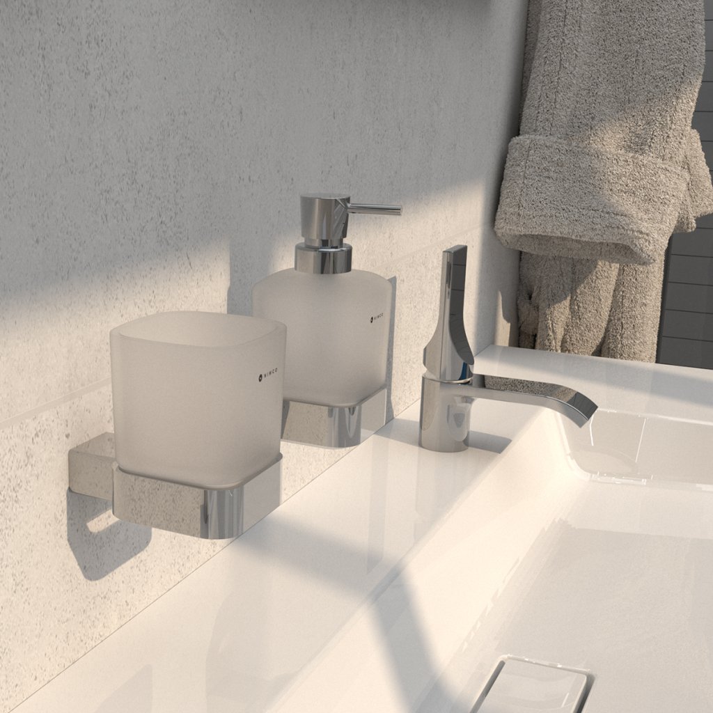 Nástěnný dávkovač tekutého mýdla matné sklo a chrom, pumpa plast je skvělým doplňkem do koupelny. Nadčasový svět ve vaší koupelně? Toho lze docílit s koupelnovými doplňky KIBO. Tato série nabízí velké množství tvarů, rozměrů, materiálů a barev. Skleněné nádobky oblých i kulatých tvarů jsou toho důkazem. Buďte originální s doplňky KIBO. K čištění povrchu se používá hadřík z mikrovlákna namočený v mýdlové vodě nebo octovém roztoku. Po umytí se vysuší povrch jemným hadříkem. Použití bělících, dezinfekčních, alkalických, silně koncentrovaných čistících prostředků obsahující silná činidla nebo použití tekutých písků by mohlo povrch poškodit!Dávkovač tekutého mýdla, pumpička plast bude koupelně slušet mnohem více, pokud zvolíte i další doplňky série Kibo z nabídky koupelnových a WC doplňků NIMCO.