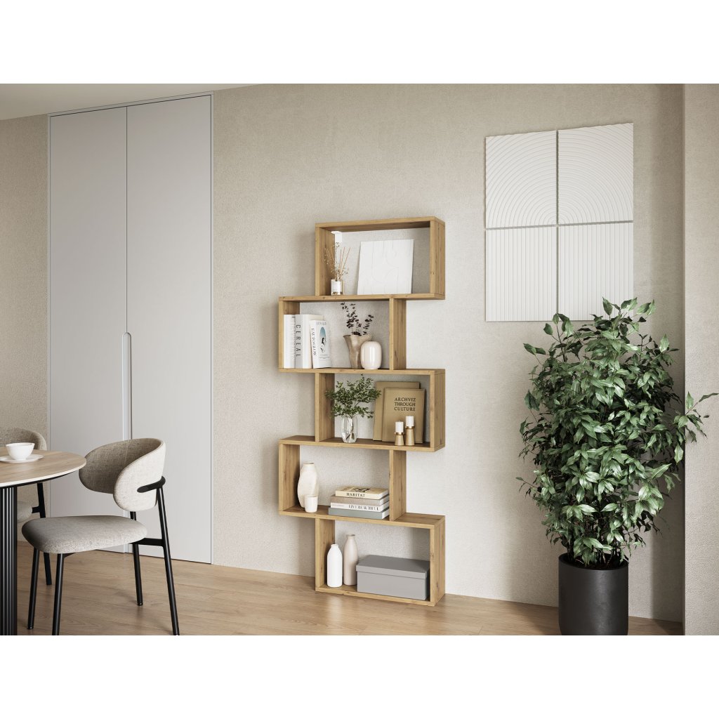 Knihovna Shellf je skvělou volbou pro ty, kteří ocení moderní a výrazné designy. Jeho originální forma založená na překrývajících se obdélnících podtrhuje minimalistický styl a černá povrchová úprava dodává každému interiéru eleganci. Tento nábytek se skvěle hodí jak do moderních, tak industriálních prostor, kde se stane klíčovým prvkem pro vytvoření čistého a vizuálně atraktivního prostoru.