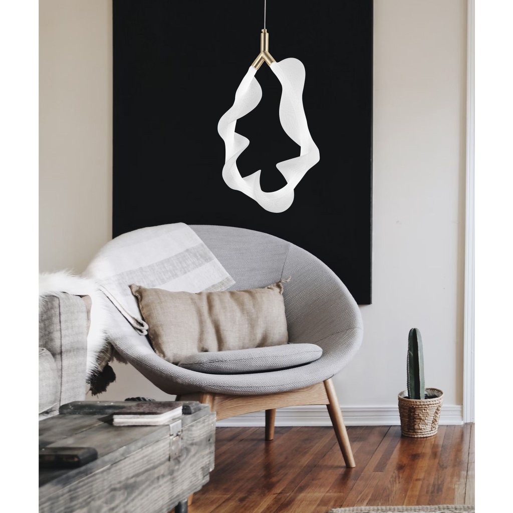 Závěsná LED lampa s uměleckou duší a inovativní formou zaujme každého milovníka moderního designu. Její dynamicky zvlněné stínidlo ve tvaru nepravidelné spirály je vyrobeno z mléčně bílého materiálu, který jemně propouští světlo a vytváří v interiéru hřejivou a útulnou atmosféru. Celkový dojem podtrhuje detail v barvě kartáčovaného zlata, který lampě dodává styl a moderní eleganci.Perfektní jako ústřední světelný prvek nad jídelním stolem, v obývacím pokoji nebo ložnici, kde bude nejen svítit, ale i zdobit.