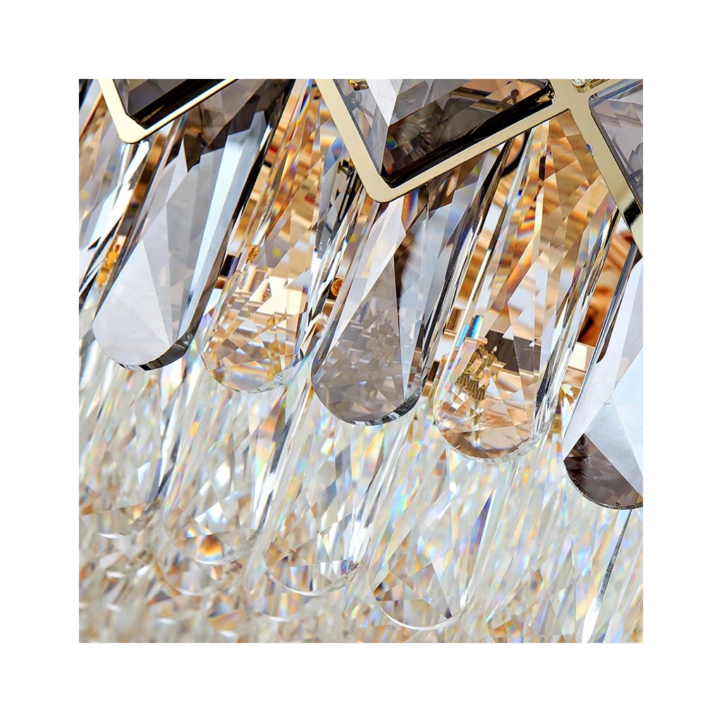 Zlaté závěsné stropní svítidlo s krystaly je elegantní doplněk do každého interiéru. Jeho lesklé zlaté provedení v kombinaci s kaskádově uspořádanými průhlednými krystaly vytváří působivou hru světla, přidávající prostoru lesk a jedinečný charakter. Konstrukce je vyrobena z kovu a dekorativní krystaly krásně rozptylují světlo, čímž vytvářejí příjemnou atmosféru. Lampa je určena k montáži vlastními silami a neobsahuje žárovky v balení (8 x E14). Skvěle se hodí do obývacího pokoje, jídelny, ložnice nebo elegantní haly, kde bude sloužit jako funkční osvětlení i dekorativní akcent interiéru.Doplňkové parametry