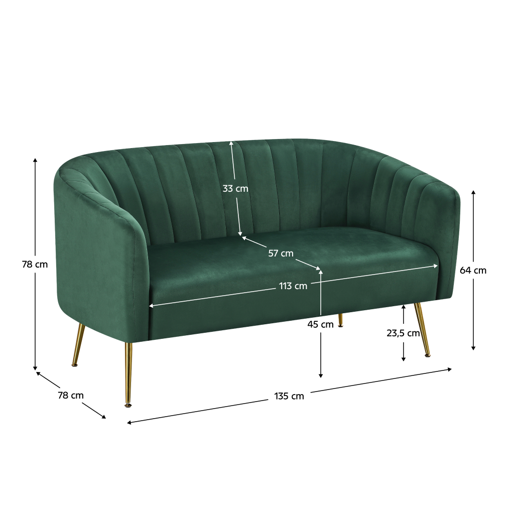 Pevná kovová konstrukce na štíhlých nožičkách nejen podtrhuje lehkost designu, ale také usnadňuje úklid pod nábytkem. Vysoká odolnost použité textilie zaručuje, že si pohovka zachová svůj krásný vzhled i při pravidelném používání. Tento 2-sed je ideální volbou pro ty, kteří hledají spojení estetiky, funkčnosti a prémiových materiálů v jednom balení.