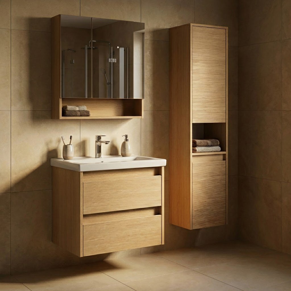 Série nábytku Arwood - nábytek do každé koupelny ve stále více populárním dekoru dřeva. Jednoduché tvary a design to je to hlavní, čím se vyznačuje tato série koupelnového nábytku. Skříňky jsou díky svým rozměrům vhodné i do malých koupelen, kde vytvoří i ke své velikosti dostatek úložného prostoru na ručníky či kosmetiku. Vybrat si můžete ze 3 šířek skříněk s umyvadlem (50, 60 a 80 cm) a doplnit je odpovídajícím rozměrem zrcadlové skříňky s praktickou otevřenou venkovní policí. Komplet umyvadlové a zrcadlové skříňky lze pak doplnit vysokou doplňkovou skříňkou. Všechny skříňky jsou vyrobeny v závěsném provedení. Pro zavěšení na stěnu jsou vybaveny rektifikačními závěsy.