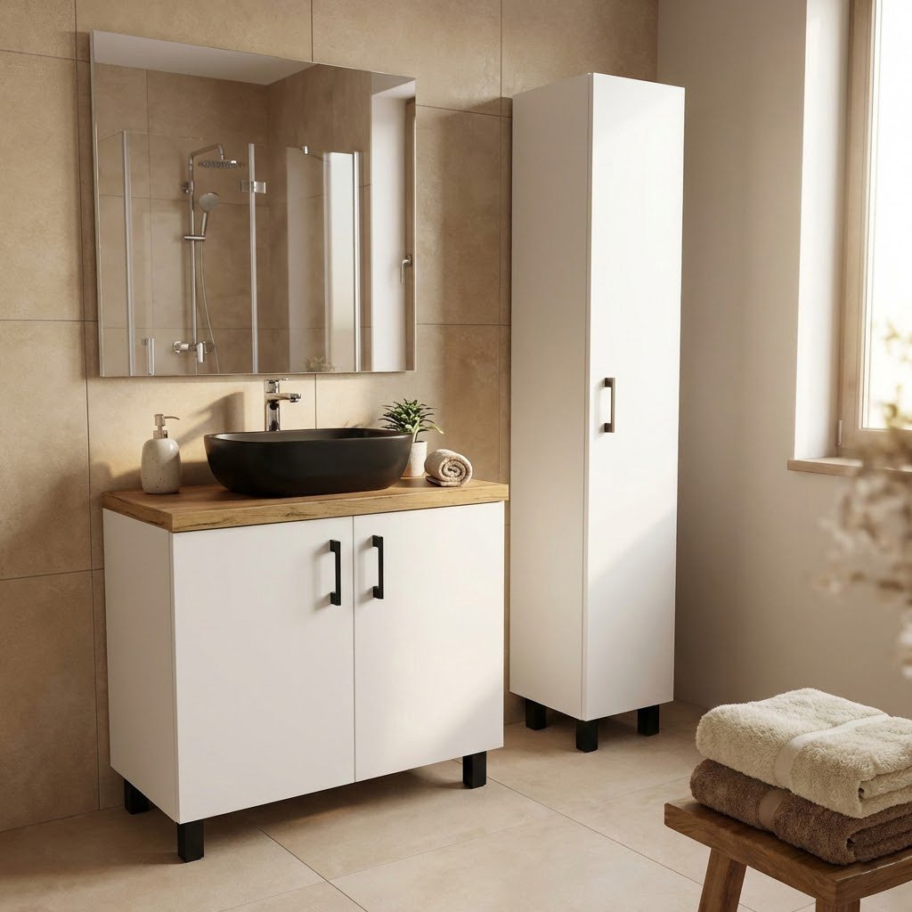 - moderní koupelnová skříňka s dostatkem úložného prostoru