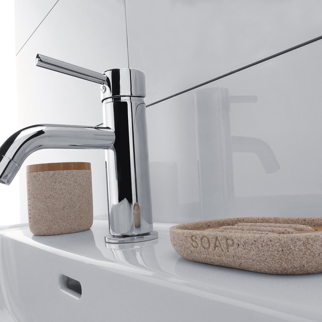 Povrch polyresinových a plastových POM materiálů vyžaduje pravidelné čištění. Volně stojící doplňky lze čistit mýdlovou vodou. Po vyčištění vytřete hadříkem do sucha. Nenechte doplněk stát na umyvadle ve vodě! Působením vody, zbytků mýdla, pasty apod. může dojít k poškození povrchu. Totéž platí i pro bambusové doplňky, které jsou součástí některých volně stojících doplňků.