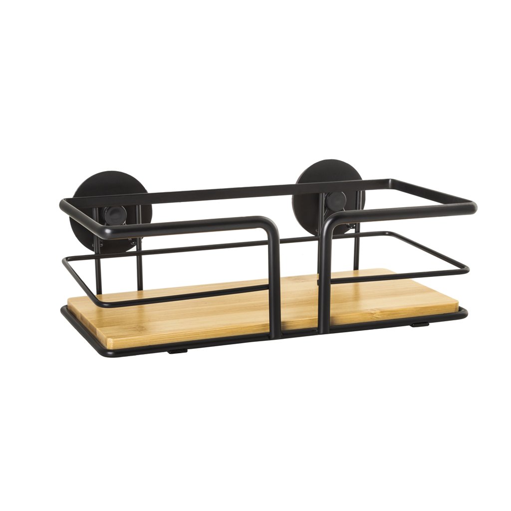 Jednoduchá drátěná koupelnová polička z oceli lakované sytě černou barvou je stylovým a funkčním řešením do různých interiérů. Její minimalistický design se hodí do moderních aranžmá a díky jednoduchému tvaru jej lze namontovat na jakoukoli stěnu. Vnitřní police z přírodního bambusového dřeva dodává eleganci a teplo a poskytuje atraktivní kontrast k černé oceli. Police se montuje pomocí vysokopevnostní samolepicí pásky 3M, která zajišťuje snadnou instalaci a pevné držení. Polička má maximální nosnost 4 kg, díky čemuž je ideální pro uložení různých koupelnových doplňků.
