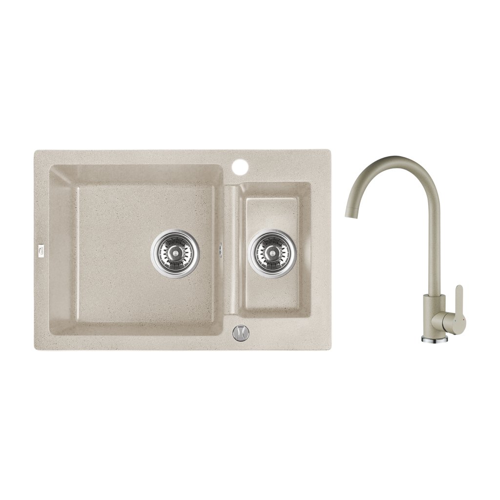 Dřez 1,5 komorový Celia, granit - SJCA430T, béžový v setu s pákovou baterií