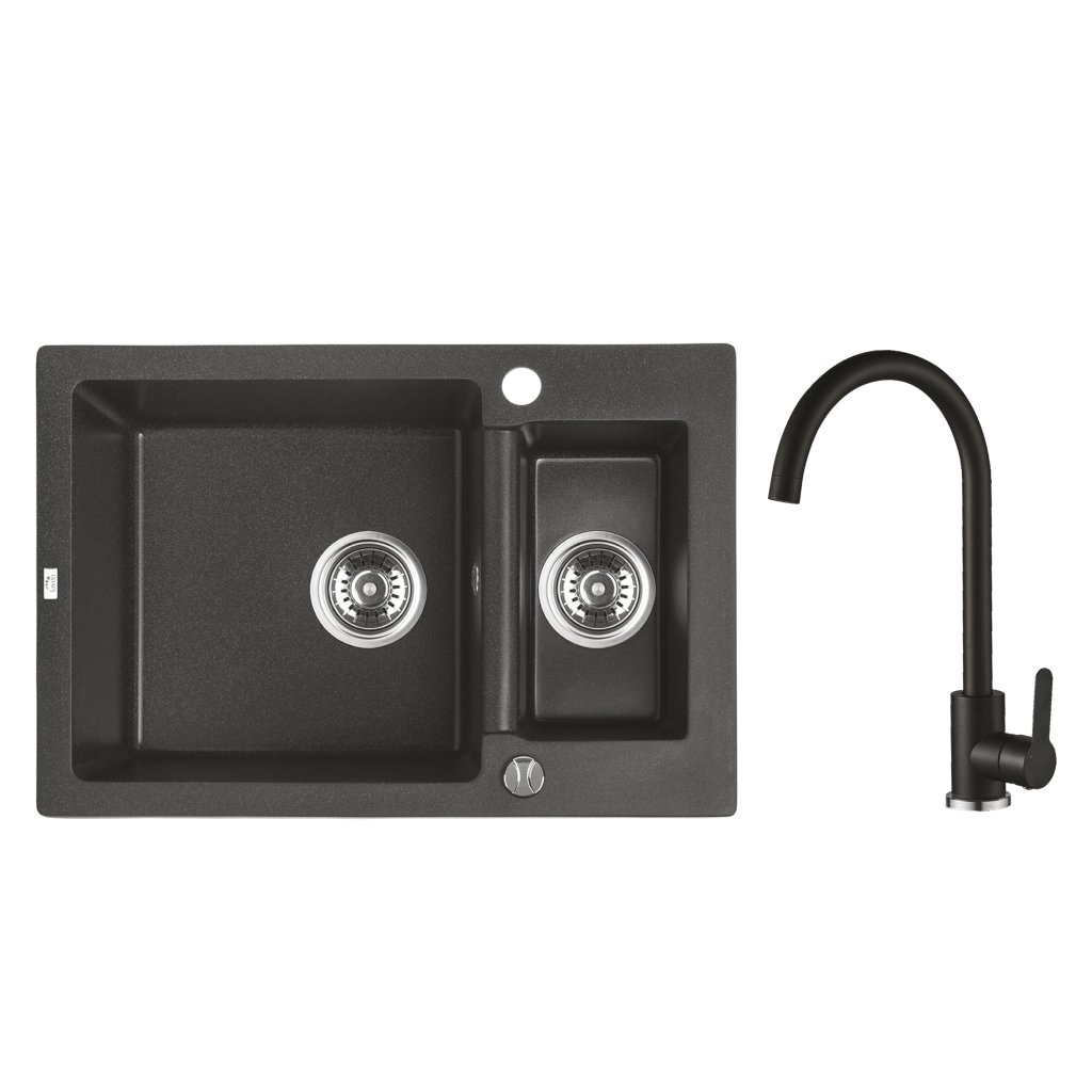 Dřez 1,5 komorový Celia, granit - SJCA730T, černý v setu s pákovou baterií