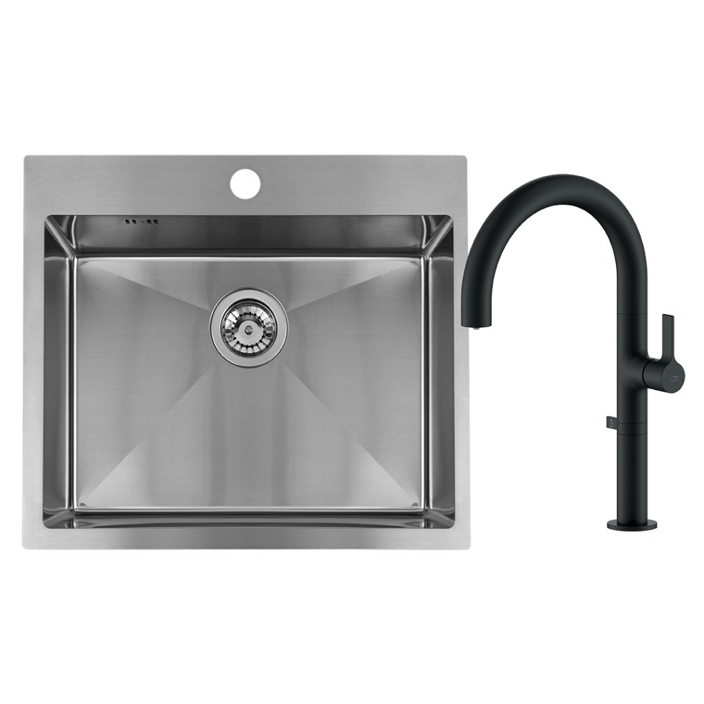 Dřez 1 komorový Malawi, nerez - SLMA010B, nerez v setu s pákovou baterií a filtrem vody