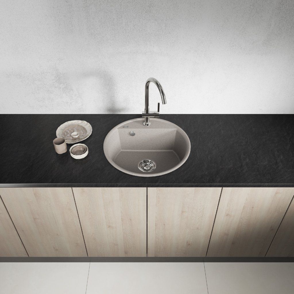 Kruhový granitový dřez Muna představuje spojení elegance a praktičnosti. Jeho jemný design a hladký povrch podtrhují sofistikovaný vzhled, který se hodí do moderních i klasických kuchyní. Dodává interiéru styl a nadčasový charakter.