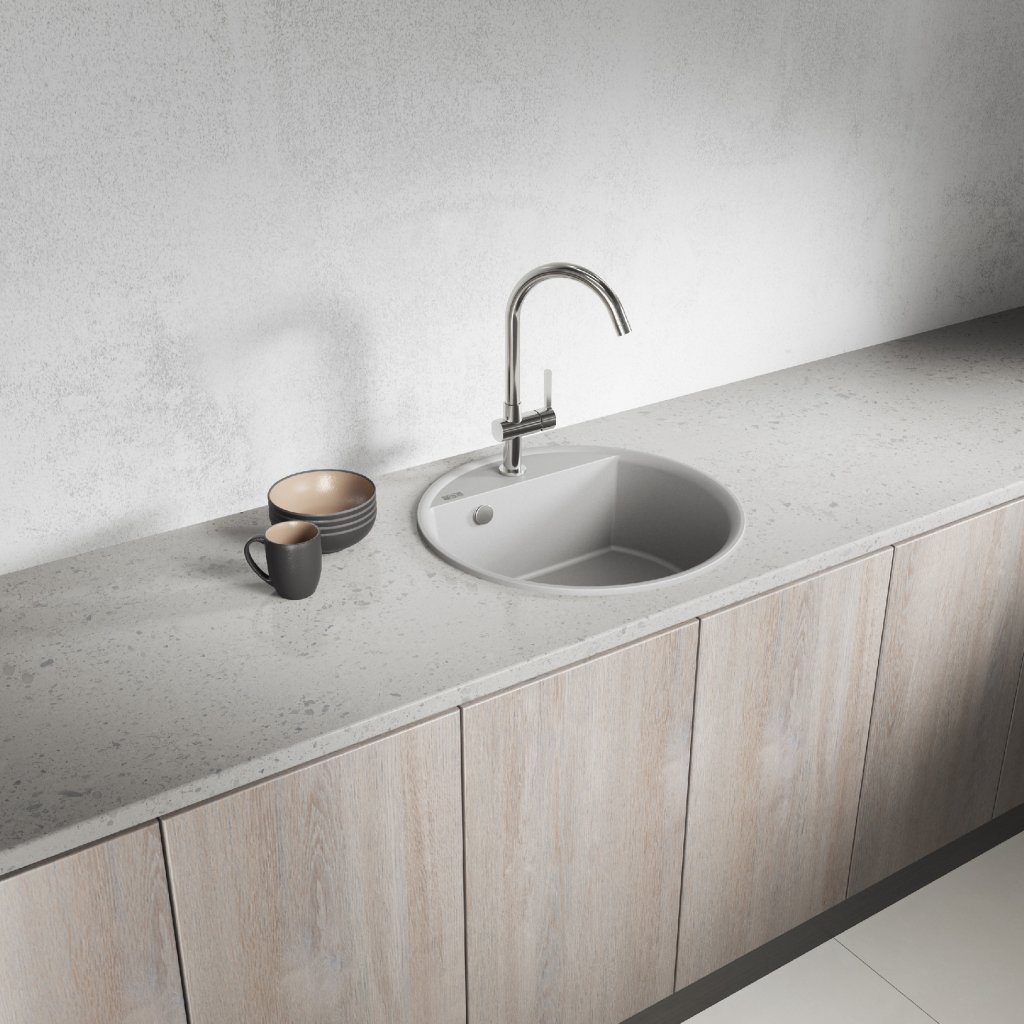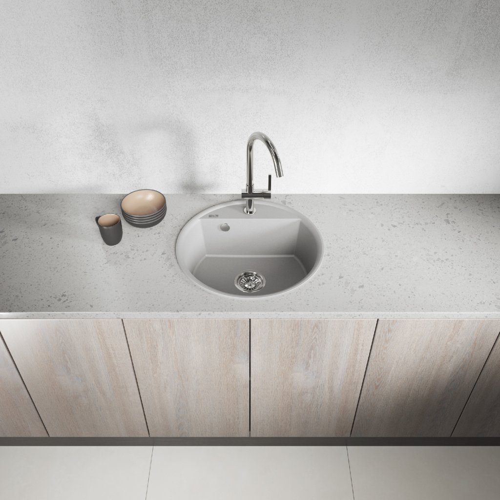 Kruhový granitový dřez Muna představuje spojení elegance a praktičnosti. Jeho jemný design a hladký povrch podtrhují sofistikovaný vzhled, který se hodí do moderních i klasických kuchyní. Dodává interiéru styl a nadčasový charakter.