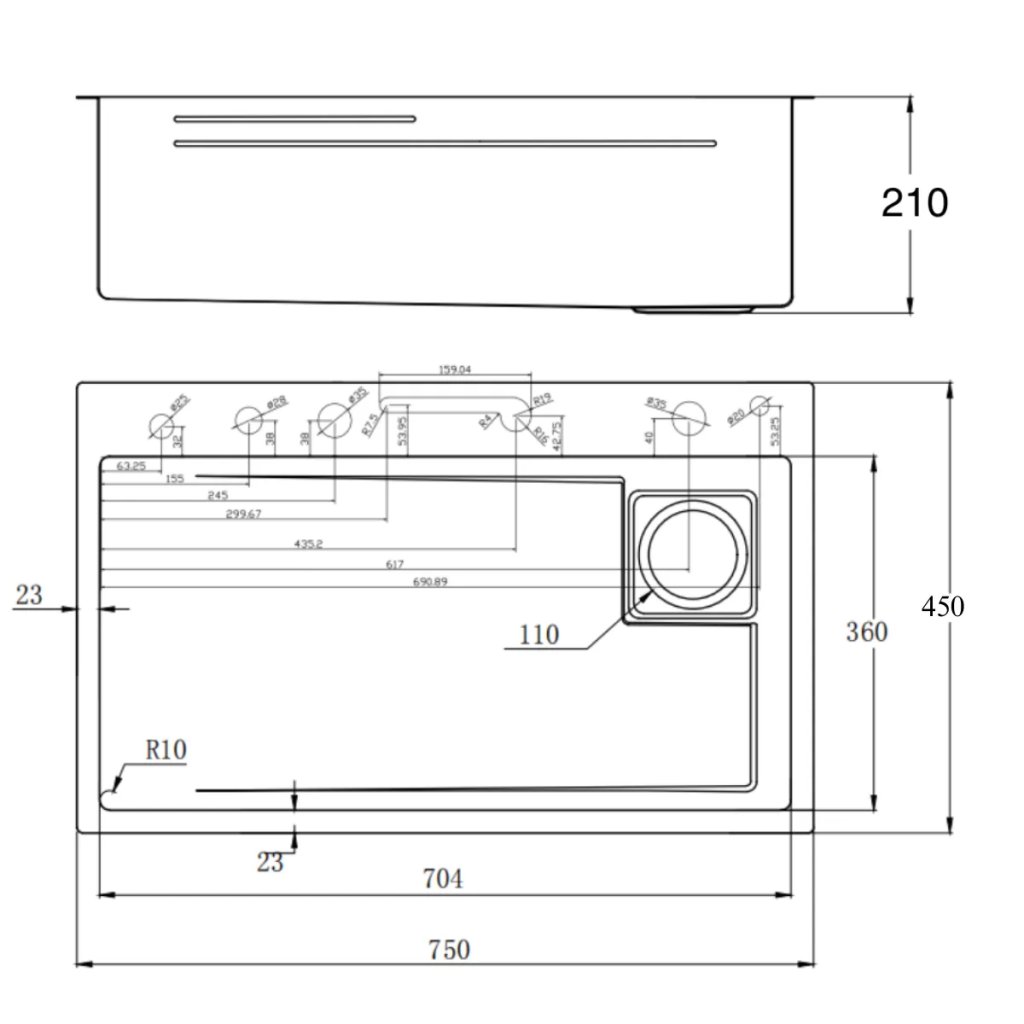 - Posuvná odkapávací plocha s uzavíratelným odtokem