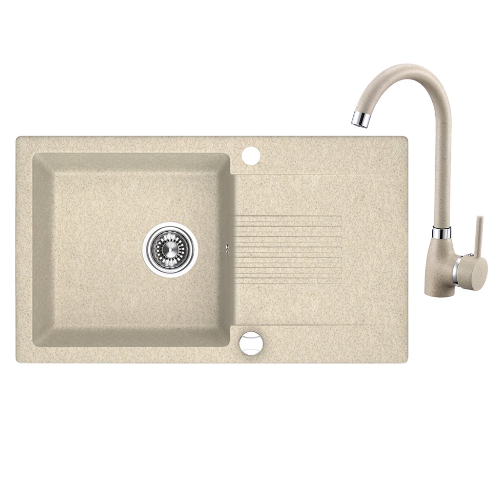 Dřez 1 komorový s odkapávačem Celia, granit - SJCG411T, béžový v setu s pákovou baterií